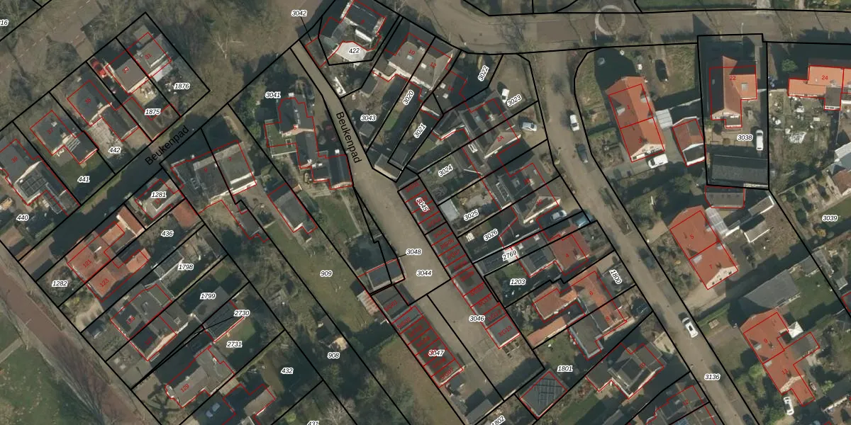 Beukenpad 3-G03 is gelegen op kadastraal perceel WCN00I3045. Deze kadastrale aanduiding is uniek en wordt gebruikt door het Kadaster om eigendomsrechten en andere zakelijke rechten vast te leggen. Het perceel maakt onderdeel uit van de kadastrale gemeente Wijchen.