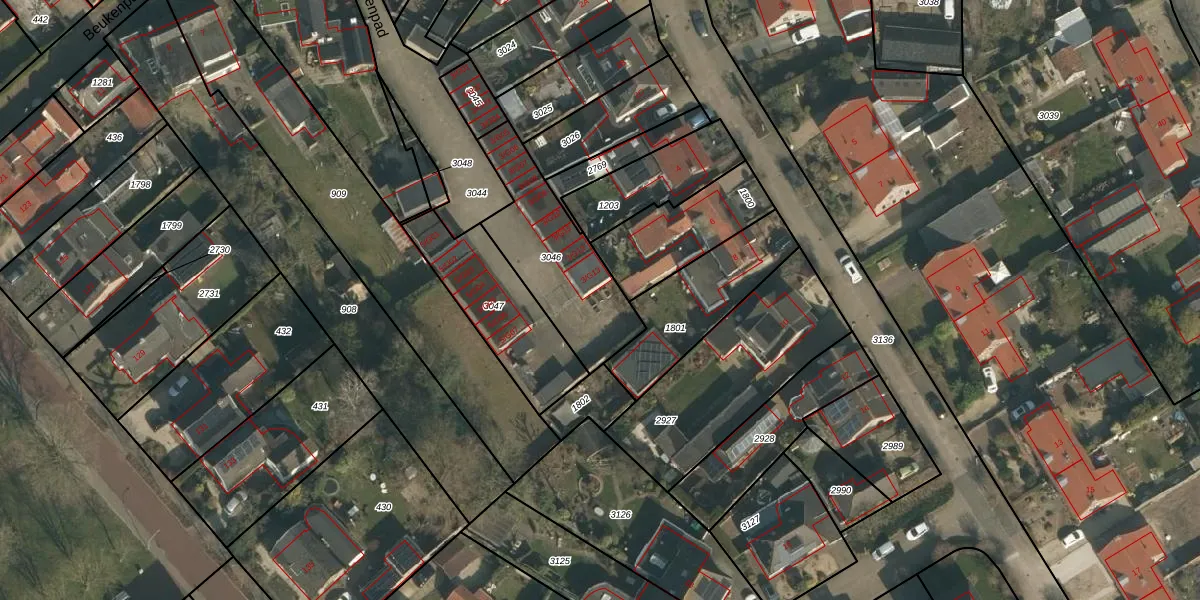 Het perceel waarop Beukenpad 3-G14 staat heeft een oppervlakte van 455 m². Dit is een groot perceel. De perceeloppervlakte wordt geregistreerd door het Kadaster. Gedetailleerde informatie over de maten van dit perceel kunt u vinden in het rapport Kadastrale kaart met maatvoering van Beukenpad 3-G14.