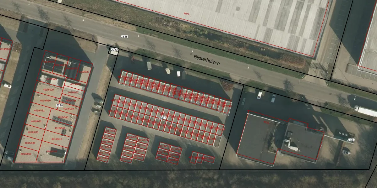 Het perceel waarop Bijsterhuizen 4017-008 staat heeft een oppervlakte van 3900 m². Dit is een zeer groot perceel. De perceeloppervlakte wordt geregistreerd door het Kadaster. Gedetailleerde informatie over de maten van dit perceel kunt u vinden in het rapport Kadastrale kaart met maatvoering van Bijsterhuizen 4017-008.