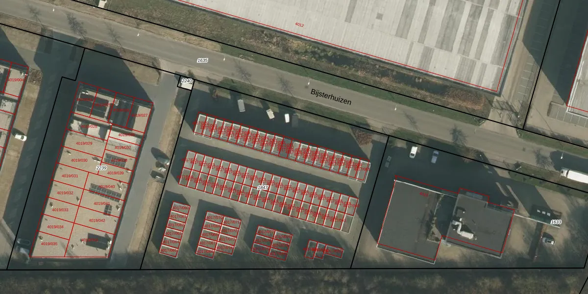 Het perceel waarop Bijsterhuizen 4017-009 staat heeft een oppervlakte van 3900 m². Dit is een zeer groot perceel. De perceeloppervlakte wordt geregistreerd door het Kadaster. Gedetailleerde informatie over de maten van dit perceel kunt u vinden in het rapport Kadastrale kaart met maatvoering van Bijsterhuizen 4017-009.