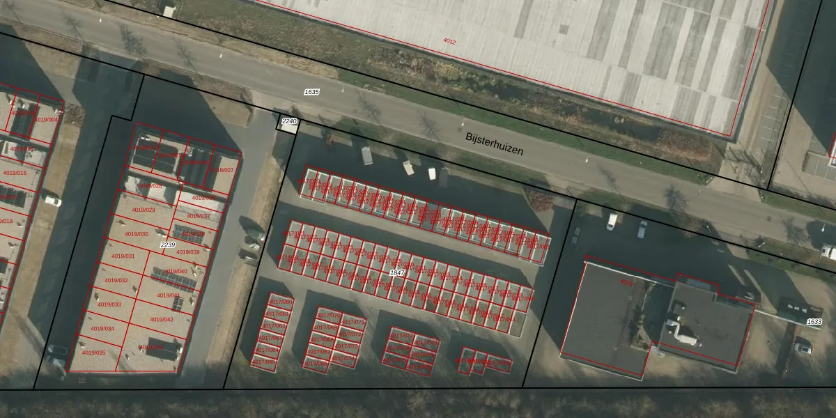 Het perceel waarop Bijsterhuizen 4017-011 staat heeft een oppervlakte van 3900 m². Dit is een zeer groot perceel. De perceeloppervlakte wordt geregistreerd door het Kadaster. Gedetailleerde informatie over de maten van dit perceel kunt u vinden in het rapport Kadastrale kaart met maatvoering van Bijsterhuizen 4017-011.
