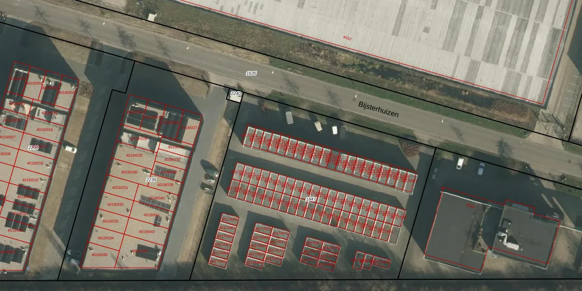 Het perceel waarop Bijsterhuizen 4017-015 staat heeft een oppervlakte van 3900 m². Dit is een zeer groot perceel. De perceeloppervlakte wordt geregistreerd door het Kadaster. Gedetailleerde informatie over de maten van dit perceel kunt u vinden in het rapport Kadastrale kaart met maatvoering van Bijsterhuizen 4017-015.