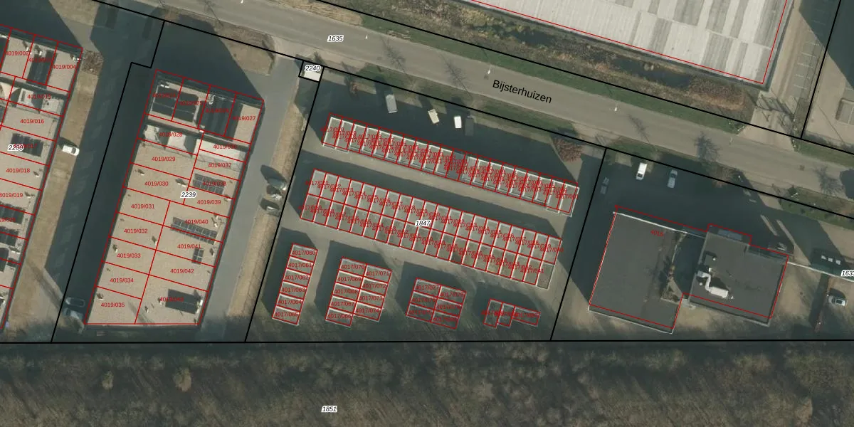 Het perceel waarop Bijsterhuizen 4017-030 staat heeft een oppervlakte van 3900 m². Dit is een zeer groot perceel. De perceeloppervlakte wordt geregistreerd door het Kadaster. Gedetailleerde informatie over de maten van dit perceel kunt u vinden in het rapport Kadastrale kaart met maatvoering van Bijsterhuizen 4017-030.