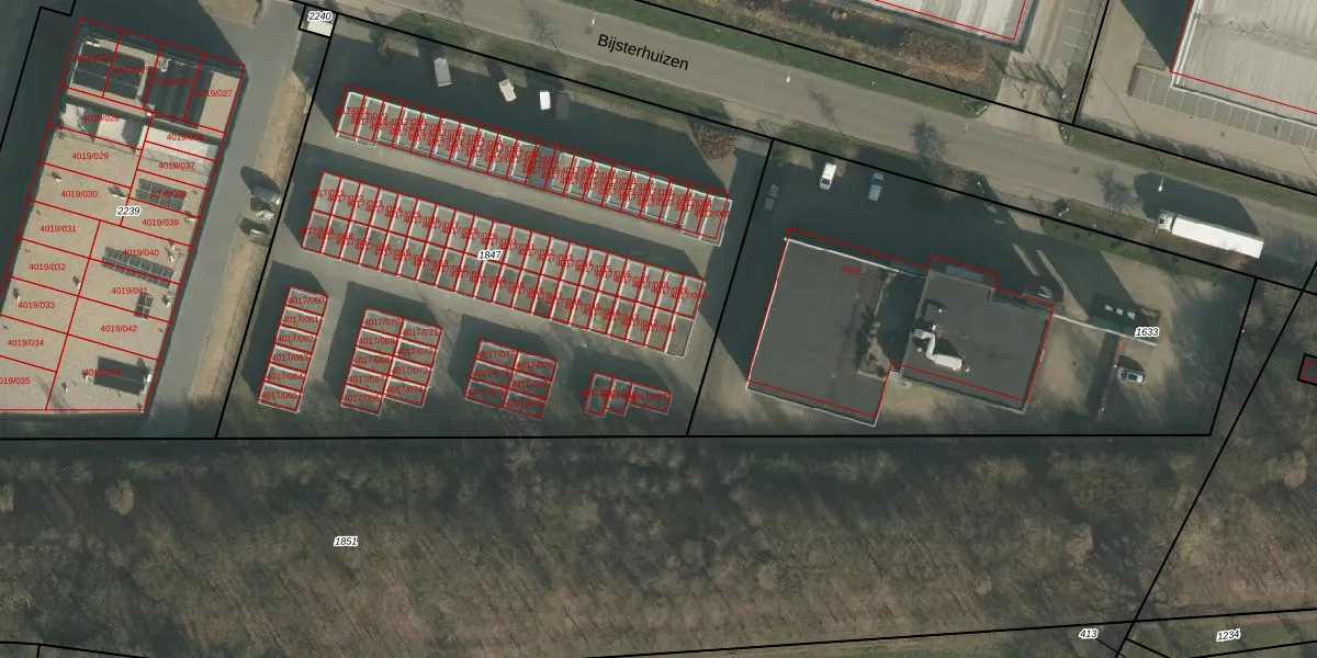 Het perceel waarop Bijsterhuizen 4017-041 staat heeft een oppervlakte van 3900 m². Dit is een zeer groot perceel. De perceeloppervlakte wordt geregistreerd door het Kadaster. Gedetailleerde informatie over de maten van dit perceel kunt u vinden in het rapport Kadastrale kaart met maatvoering van Bijsterhuizen 4017-041.