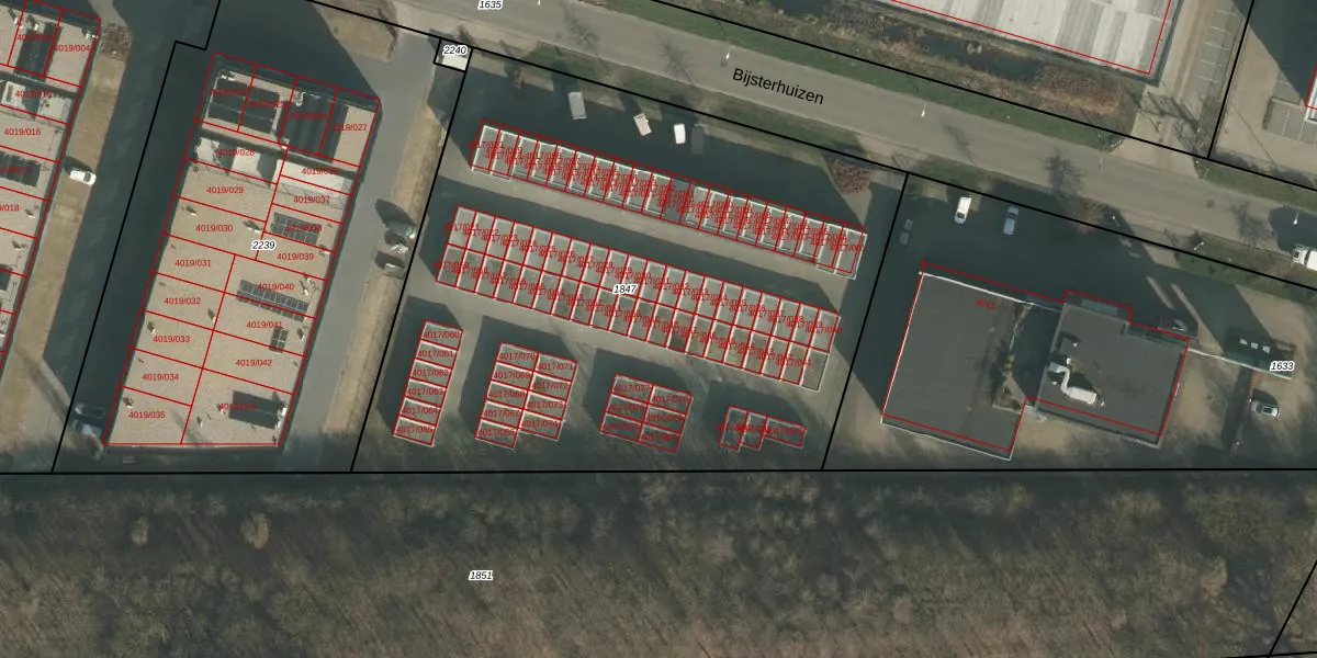 Bijsterhuizen 4017-048 is gelegen op kadastraal perceel WCN00K1847. Deze kadastrale aanduiding is uniek en wordt gebruikt door het Kadaster om eigendomsrechten en andere zakelijke rechten vast te leggen. Het perceel maakt onderdeel uit van de kadastrale gemeente Wijchen.