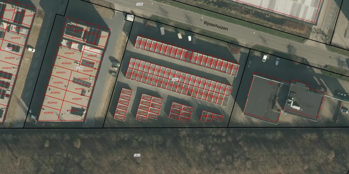 Het perceel waarop Bijsterhuizen 4017-050 staat heeft een oppervlakte van 3900 m². Dit is een zeer groot perceel. De perceeloppervlakte wordt geregistreerd door het Kadaster. Gedetailleerde informatie over de maten van dit perceel kunt u vinden in het rapport Kadastrale kaart met maatvoering van Bijsterhuizen 4017-050.