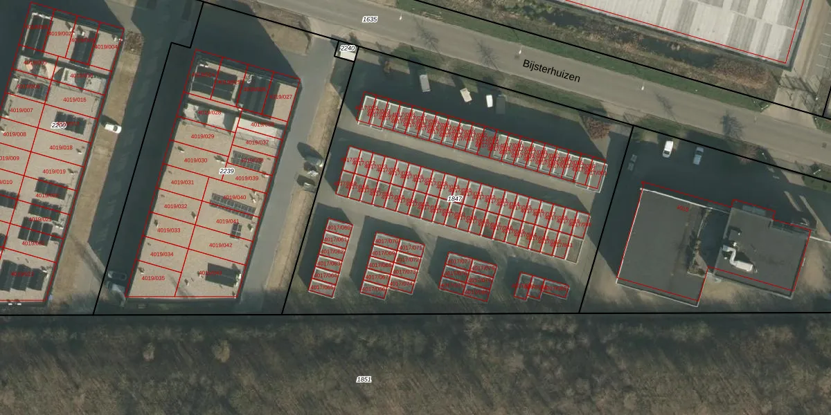 Het perceel waarop Bijsterhuizen 4017-053 staat heeft een oppervlakte van 3900 m². Dit is een zeer groot perceel. De perceeloppervlakte wordt geregistreerd door het Kadaster. Gedetailleerde informatie over de maten van dit perceel kunt u vinden in het rapport Kadastrale kaart met maatvoering van Bijsterhuizen 4017-053.