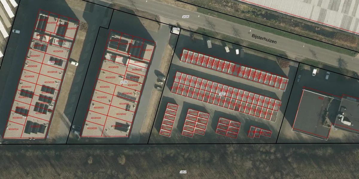 Het perceel waarop Bijsterhuizen 4017-058 staat heeft een oppervlakte van 3900 m². Dit is een zeer groot perceel. De perceeloppervlakte wordt geregistreerd door het Kadaster. Gedetailleerde informatie over de maten van dit perceel kunt u vinden in het rapport Kadastrale kaart met maatvoering van Bijsterhuizen 4017-058.