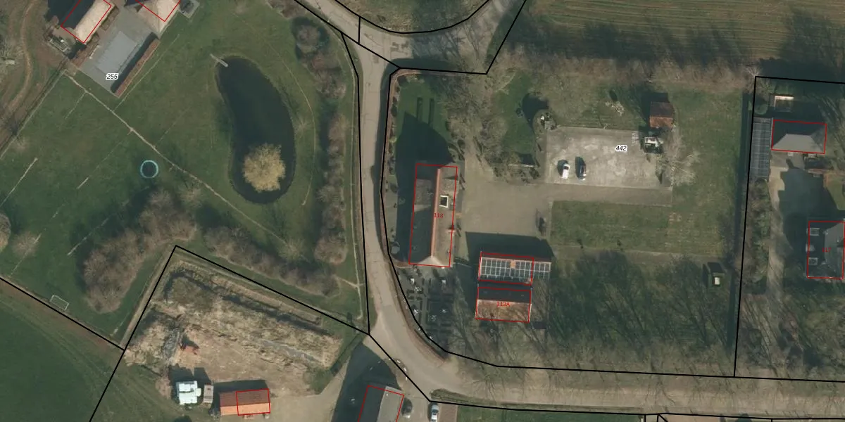 Het adres ligt op het perceel WCN00-Q-442, dat zich in de kadastrale gemeente Wijchen bevindt. Het perceel is met 1,2 ha relatief groot. Het gemiddelde ligt in de kadastrale gemeente Wijchen op 1828,5 m². Het grootste perceel in de kadastrale gemeente is 66,4 ha. Het kleinste perceel heeft een oppervlakte van 0 m². Op het perceel zijn 2 adressen aanwezig. De huidige grenzen van het perceel zijn digitaal in de Basisregistratie Kadaster (BRK) geregistreerd op 20-04-2011.
