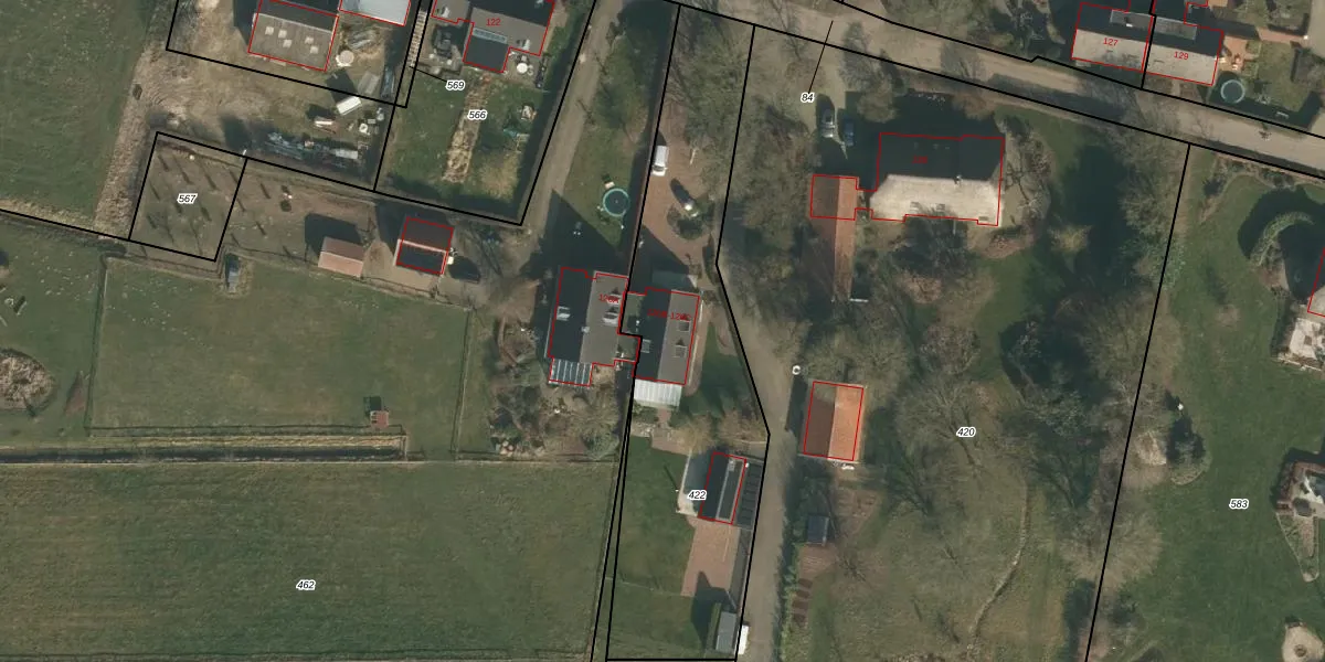 Het perceel waarop Boskant 126-B staat heeft een oppervlakte van 1585 m². Dit is een zeer groot perceel. De perceeloppervlakte wordt geregistreerd door het Kadaster. Gedetailleerde informatie over de maten van dit perceel kunt u vinden in het rapport Kadastrale kaart met maatvoering van Boskant 126-B.