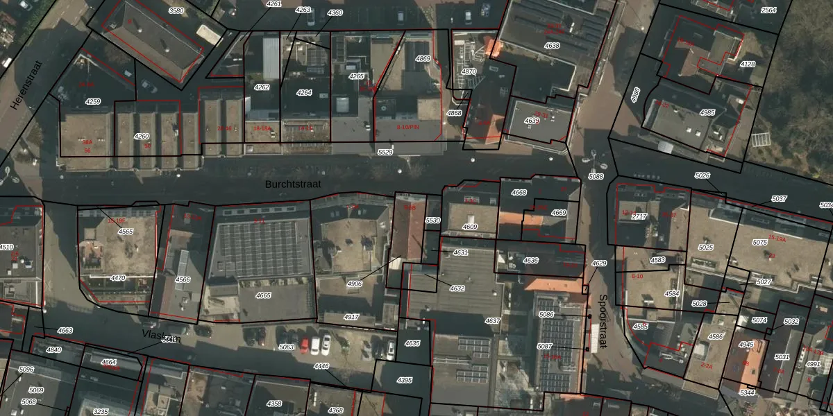 Burchtstraat 5-A is gelegen op kadastraal perceel WCN00H4906. Deze kadastrale aanduiding is uniek en wordt gebruikt door het Kadaster om eigendomsrechten en andere zakelijke rechten vast te leggen. Het perceel maakt onderdeel uit van de kadastrale gemeente Wijchen.