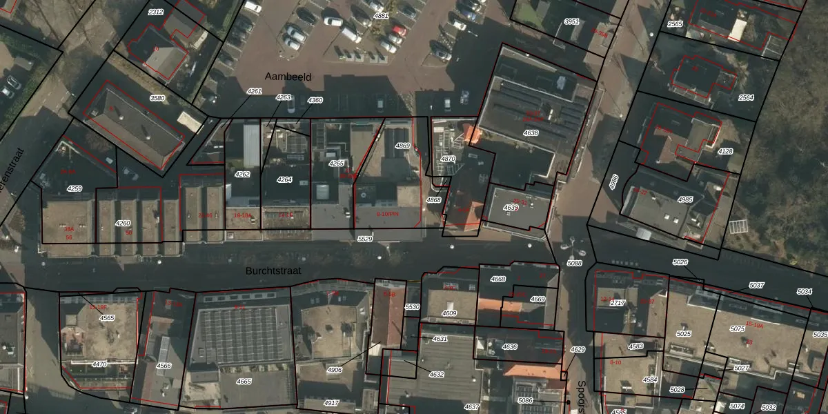Het perceel waarop Burchtstraat 8 staat heeft een oppervlakte van 447 m². Dit is een groot perceel. De perceeloppervlakte wordt geregistreerd door het Kadaster. Gedetailleerde informatie over de maten van dit perceel kunt u vinden in het rapport Kadastrale kaart met maatvoering van Burchtstraat 8.