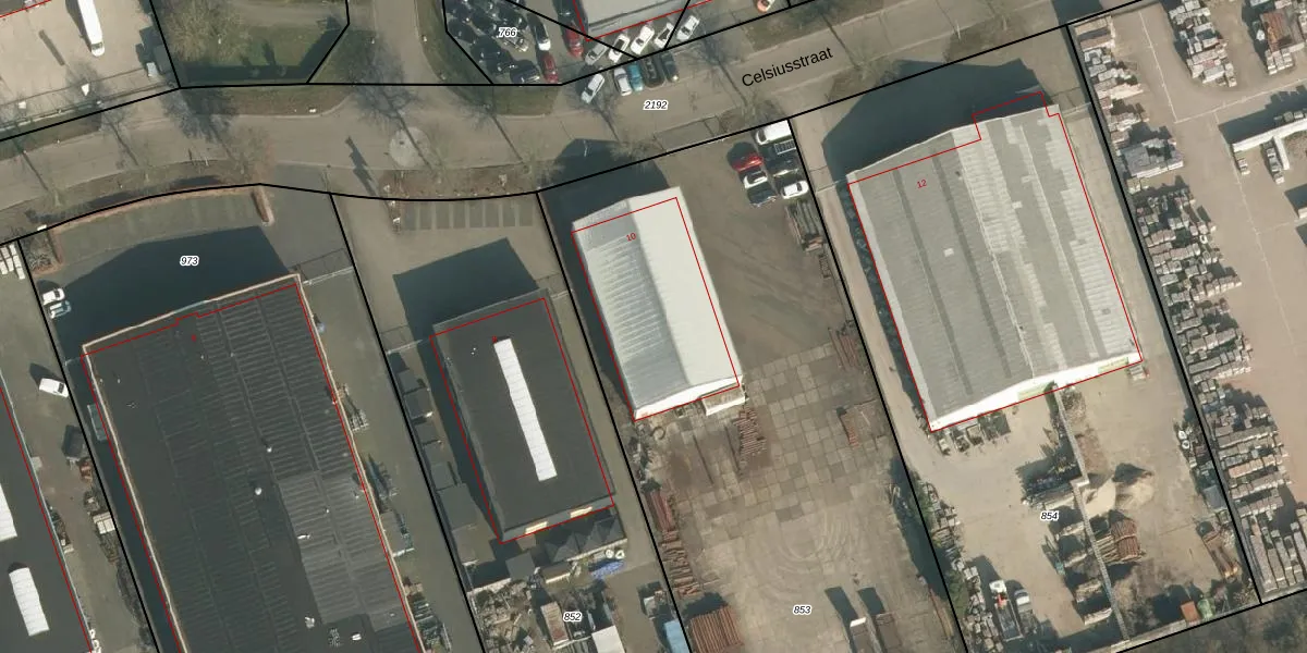 Het perceel waarop Celsiusstraat 10 staat heeft een oppervlakte van 3789 m². Dit is een zeer groot perceel. De perceeloppervlakte wordt geregistreerd door het Kadaster. Gedetailleerde informatie over de maten van dit perceel kunt u vinden in het rapport Kadastrale kaart met maatvoering van Celsiusstraat 10.