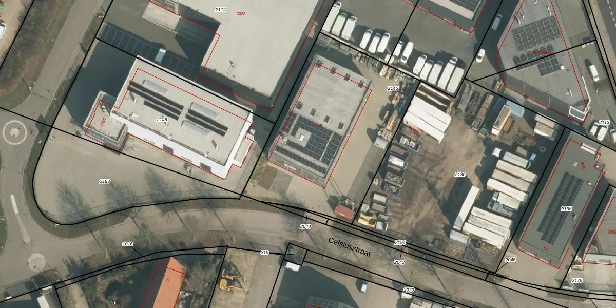 Het perceel waarop Celsiusstraat 49 staat heeft een oppervlakte van 1995 m². Dit is een zeer groot perceel. De perceeloppervlakte wordt geregistreerd door het Kadaster. Gedetailleerde informatie over de maten van dit perceel kunt u vinden in het rapport Kadastrale kaart met maatvoering van Celsiusstraat 49.
