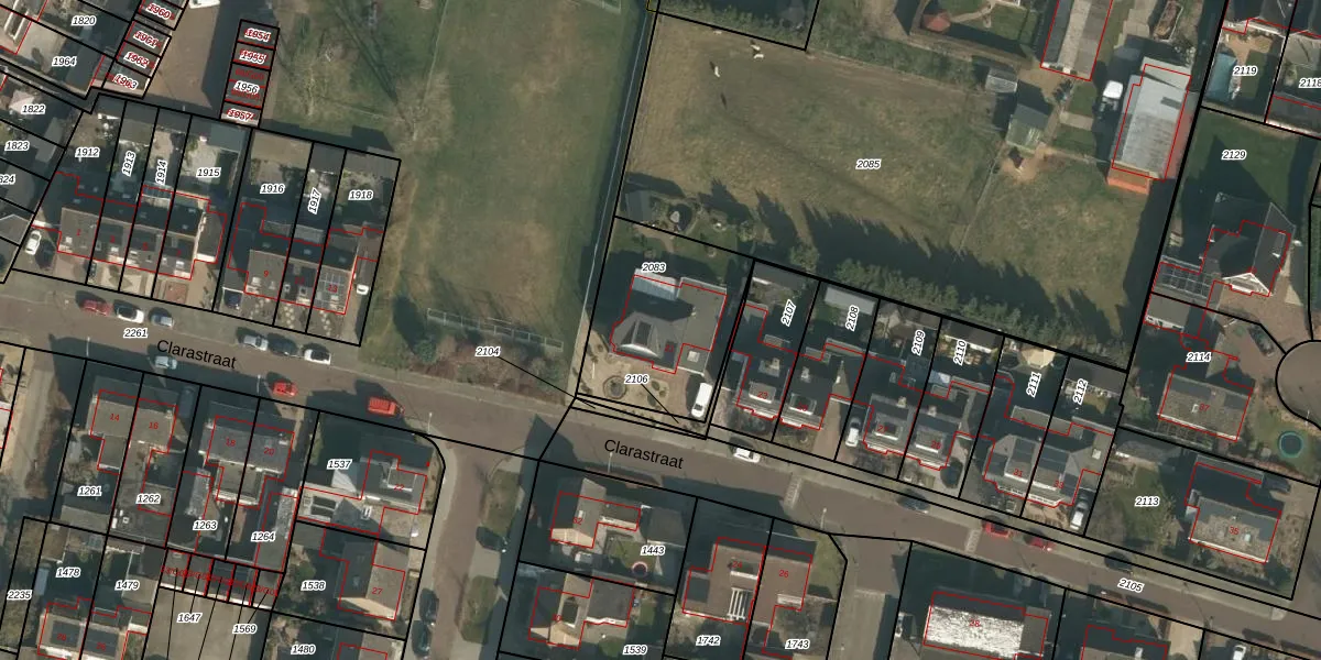 Clarastraat 21 is gelegen op kadastraal perceel WCN00D2083. Deze kadastrale aanduiding is uniek en wordt gebruikt door het Kadaster om eigendomsrechten en andere zakelijke rechten vast te leggen. Het perceel maakt onderdeel uit van de kadastrale gemeente Wijchen.
