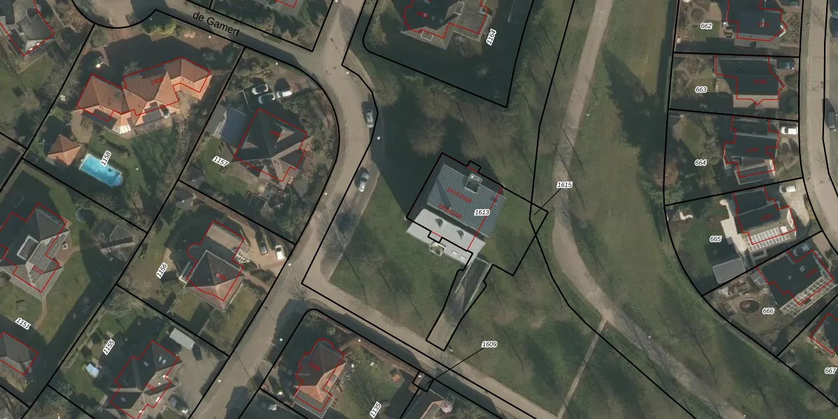 de Gamert 2410-B is gelegen op kadastraal perceel WCN00P1613. Deze kadastrale aanduiding is uniek en wordt gebruikt door het Kadaster om eigendomsrechten en andere zakelijke rechten vast te leggen. Het perceel maakt onderdeel uit van de kadastrale gemeente Wijchen.