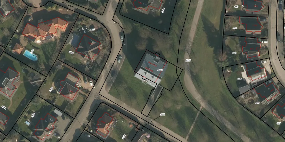Het perceel waarop de Gamert 2414-B staat heeft een oppervlakte van 634 m². Dit is een groot perceel. De perceeloppervlakte wordt geregistreerd door het Kadaster. Gedetailleerde informatie over de maten van dit perceel kunt u vinden in het rapport Kadastrale kaart met maatvoering van de Gamert 2414-B.