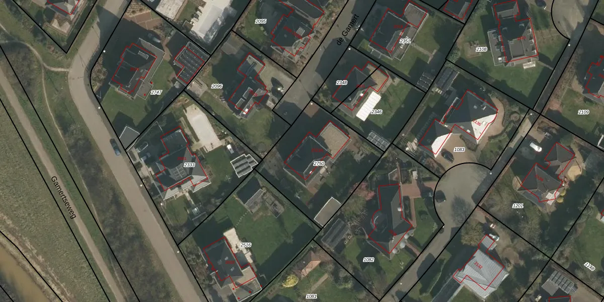 Het perceel waarop de Gamert 2521-A staat heeft een oppervlakte van 935 m². Dit is een groot perceel. De perceeloppervlakte wordt geregistreerd door het Kadaster. Gedetailleerde informatie over de maten van dit perceel kunt u vinden in het rapport Kadastrale kaart met maatvoering van de Gamert 2521-A.