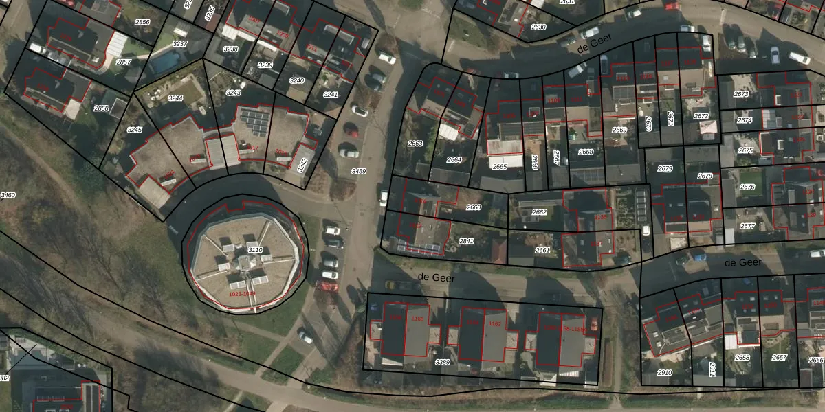 Het perceel waarop de Geer 1010 staat heeft een oppervlakte van 249 m². Dit is een middelgroot perceel. De perceeloppervlakte wordt geregistreerd door het Kadaster. Gedetailleerde informatie over de maten van dit perceel kunt u vinden in het rapport Kadastrale kaart met maatvoering van de Geer 1010.