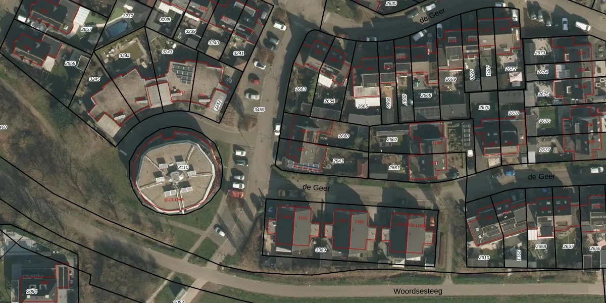 de Geer 1012 is gelegen op kadastraal perceel WCN00F2841. Deze kadastrale aanduiding is uniek en wordt gebruikt door het Kadaster om eigendomsrechten en andere zakelijke rechten vast te leggen. Het perceel maakt onderdeel uit van de kadastrale gemeente Wijchen.
