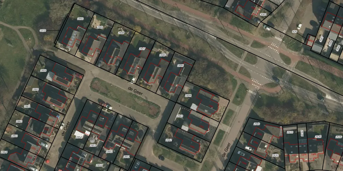 Gebruik de zoekbalk of klik op een perceel voor informatie over de adressen binnen dit perceel.