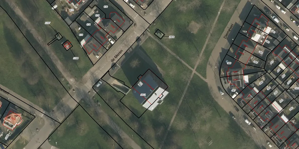Het perceel waarop de Meren 1021 staat heeft een oppervlakte van 634 m². Dit is een groot perceel. De perceeloppervlakte wordt geregistreerd door het Kadaster. Gedetailleerde informatie over de maten van dit perceel kunt u vinden in het rapport Kadastrale kaart met maatvoering van de Meren 1021.