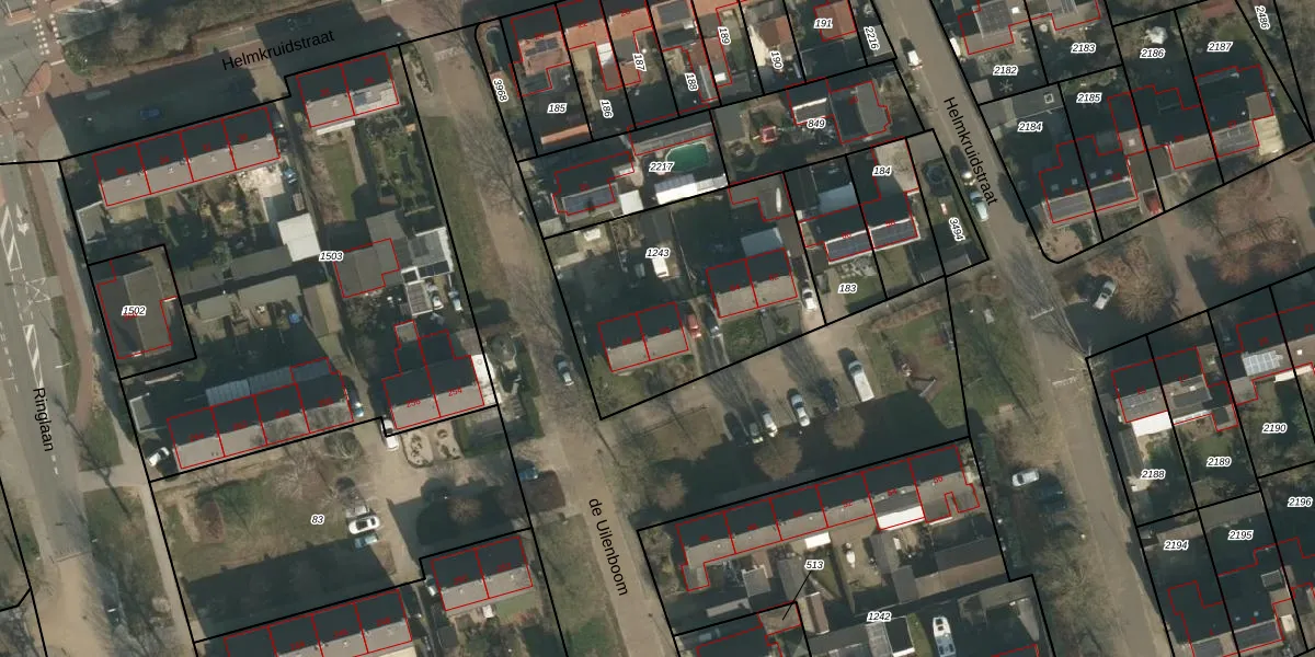 Het perceel waarop de Uilenboom 66 staat heeft een oppervlakte van 1015 m². Dit is een zeer groot perceel. De perceeloppervlakte wordt geregistreerd door het Kadaster. Gedetailleerde informatie over de maten van dit perceel kunt u vinden in het rapport Kadastrale kaart met maatvoering van de Uilenboom 66.