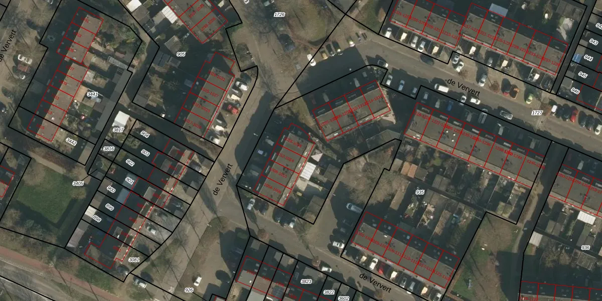 Het perceel waarop de Ververt 1018 staat heeft een oppervlakte van 4250 m². Dit is een zeer groot perceel. De perceeloppervlakte wordt geregistreerd door het Kadaster. Gedetailleerde informatie over de maten van dit perceel kunt u vinden in het rapport Kadastrale kaart met maatvoering van de Ververt 1018.