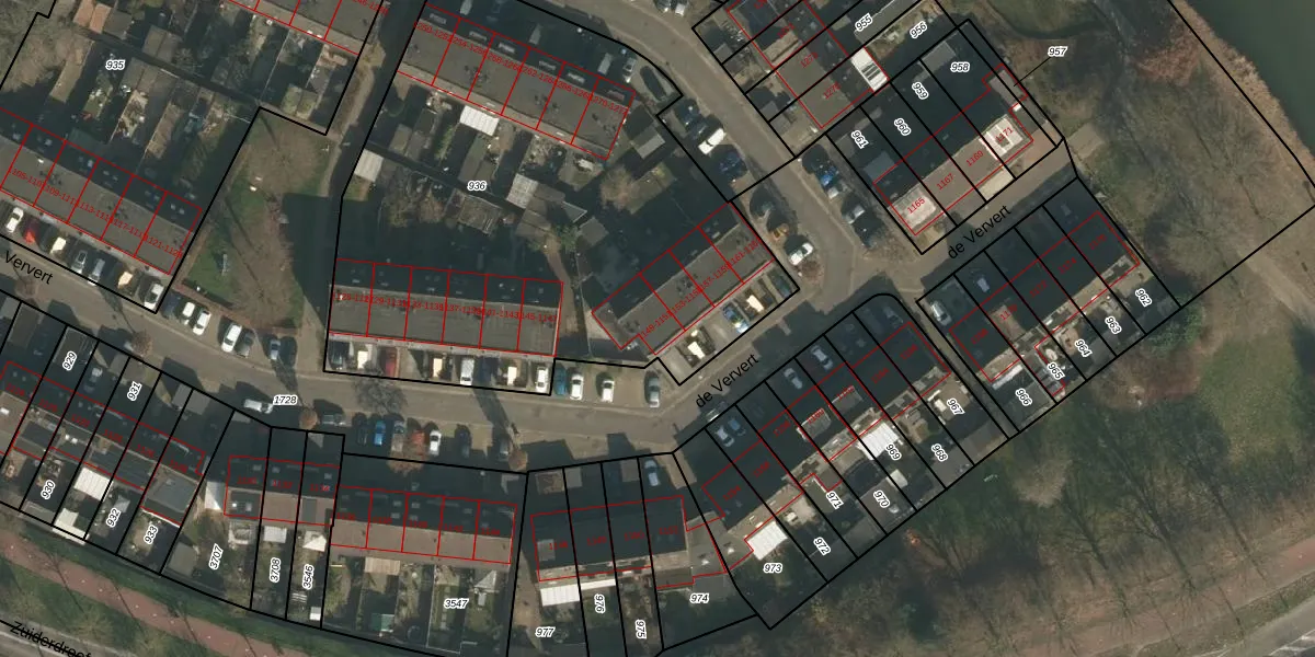 Het perceel waarop de Ververt 1149 staat heeft een oppervlakte van 3025 m². Dit is een zeer groot perceel. De perceeloppervlakte wordt geregistreerd door het Kadaster. Gedetailleerde informatie over de maten van dit perceel kunt u vinden in het rapport Kadastrale kaart met maatvoering van de Ververt 1149.