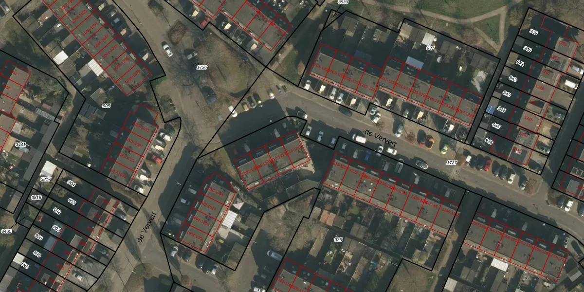 Het perceel waarop de Ververt 1214 staat heeft een oppervlakte van 4250 m². Dit is een zeer groot perceel. De perceeloppervlakte wordt geregistreerd door het Kadaster. Gedetailleerde informatie over de maten van dit perceel kunt u vinden in het rapport Kadastrale kaart met maatvoering van de Ververt 1214.