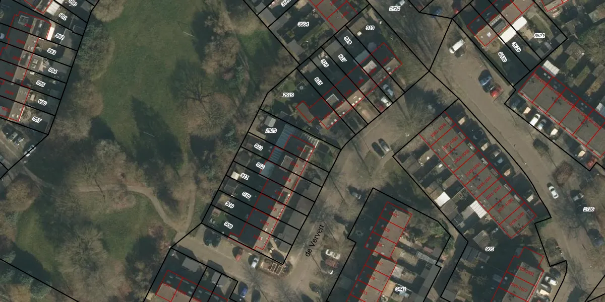 Het perceel waarop de Ververt 1314 staat heeft een oppervlakte van 255 m². Dit is een middelgroot perceel. De perceeloppervlakte wordt geregistreerd door het Kadaster. Gedetailleerde informatie over de maten van dit perceel kunt u vinden in het rapport Kadastrale kaart met maatvoering van de Ververt 1314.