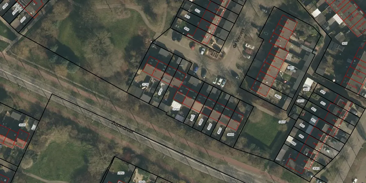 Het perceel waarop de Ververt 1329 staat heeft een oppervlakte van 442 m². Dit is een groot perceel. De perceeloppervlakte wordt geregistreerd door het Kadaster. Gedetailleerde informatie over de maten van dit perceel kunt u vinden in het rapport Kadastrale kaart met maatvoering van de Ververt 1329.