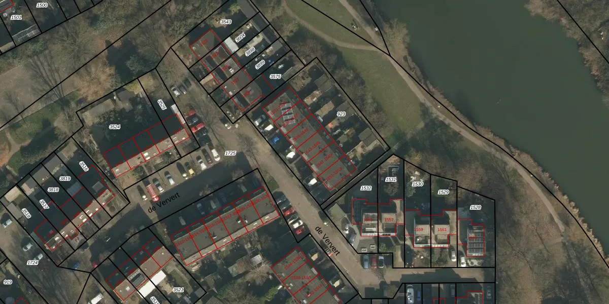 Het perceel waarop de Ververt 1543 staat heeft een oppervlakte van 1158 m². Dit is een zeer groot perceel. De perceeloppervlakte wordt geregistreerd door het Kadaster. Gedetailleerde informatie over de maten van dit perceel kunt u vinden in het rapport Kadastrale kaart met maatvoering van de Ververt 1543.