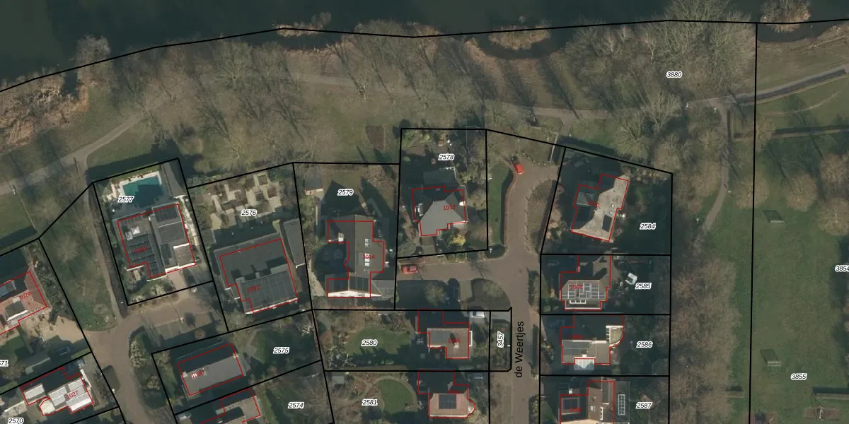 de Weertjes 1012 is gelegen op kadastraal perceel WCN00F2578. Deze kadastrale aanduiding is uniek en wordt gebruikt door het Kadaster om eigendomsrechten en andere zakelijke rechten vast te leggen. Het perceel maakt onderdeel uit van de kadastrale gemeente Wijchen.