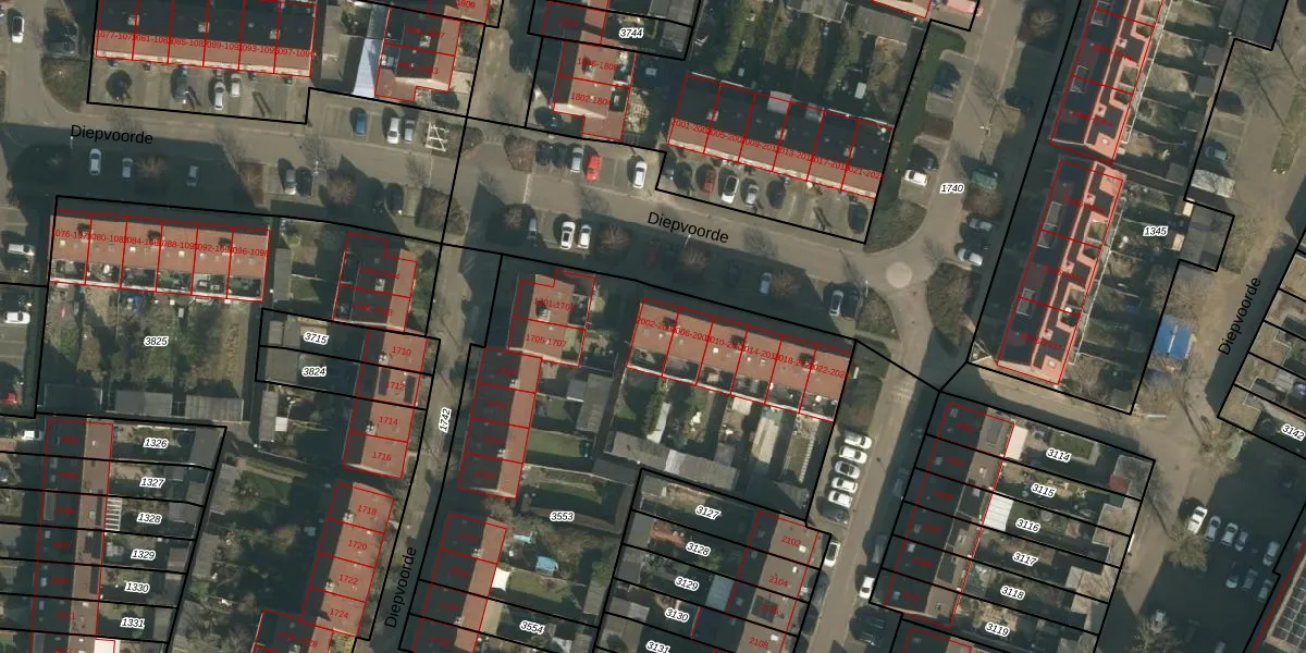 Het perceel waarop Diepvoorde 2002 staat heeft een oppervlakte van 2258 m². Dit is een zeer groot perceel. De perceeloppervlakte wordt geregistreerd door het Kadaster. Gedetailleerde informatie over de maten van dit perceel kunt u vinden in het rapport Kadastrale kaart met maatvoering van Diepvoorde 2002.
