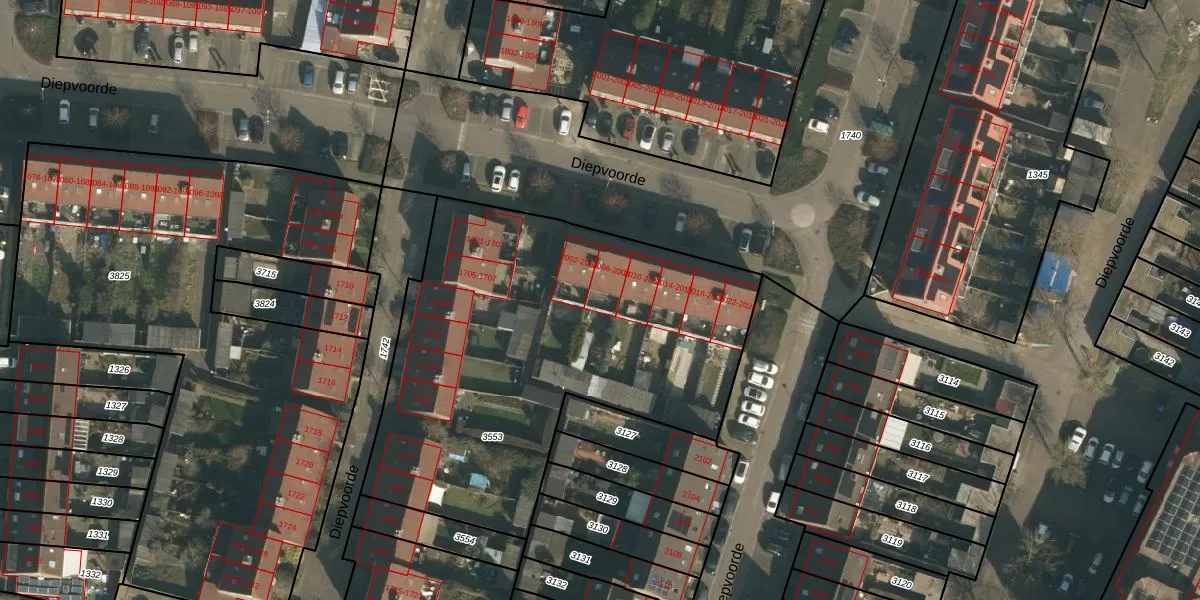 Het perceel waarop Diepvoorde 2008 staat heeft een oppervlakte van 2258 m². Dit is een zeer groot perceel. De perceeloppervlakte wordt geregistreerd door het Kadaster. Gedetailleerde informatie over de maten van dit perceel kunt u vinden in het rapport Kadastrale kaart met maatvoering van Diepvoorde 2008.
