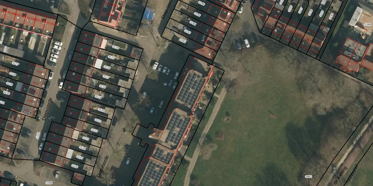 Diepvoorde 2223 is gelegen op kadastraal perceel WCN00F3083. Deze kadastrale aanduiding is uniek en wordt gebruikt door het Kadaster om eigendomsrechten en andere zakelijke rechten vast te leggen. Het perceel maakt onderdeel uit van de kadastrale gemeente Wijchen.
