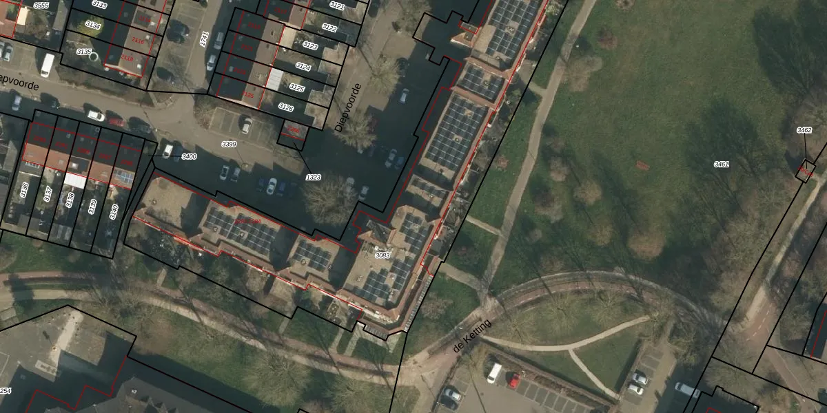 Diepvoorde 2233 is gelegen op kadastraal perceel WCN00F3083. Deze kadastrale aanduiding is uniek en wordt gebruikt door het Kadaster om eigendomsrechten en andere zakelijke rechten vast te leggen. Het perceel maakt onderdeel uit van de kadastrale gemeente Wijchen.