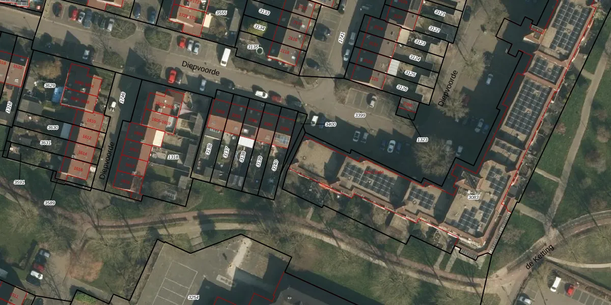 Het perceel waarop Diepvoorde 2243 staat heeft een oppervlakte van 3585 m². Dit is een zeer groot perceel. De perceeloppervlakte wordt geregistreerd door het Kadaster. Gedetailleerde informatie over de maten van dit perceel kunt u vinden in het rapport Kadastrale kaart met maatvoering van Diepvoorde 2243.