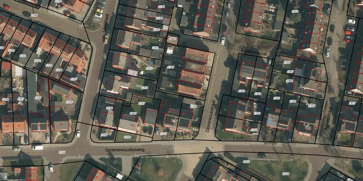 Het perceel waarop Dominicusstraat 1-A staat heeft een oppervlakte van 740 m². Dit is een groot perceel. De perceeloppervlakte wordt geregistreerd door het Kadaster. Gedetailleerde informatie over de maten van dit perceel kunt u vinden in het rapport Kadastrale kaart met maatvoering van Dominicusstraat 1-A.