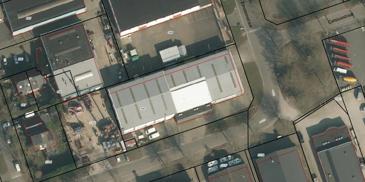 Het perceel waarop Edisonstraat 47 staat heeft een oppervlakte van 2735 m². Dit is een zeer groot perceel. De perceeloppervlakte wordt geregistreerd door het Kadaster. Gedetailleerde informatie over de maten van dit perceel kunt u vinden in het rapport Kadastrale kaart met maatvoering van Edisonstraat 47.