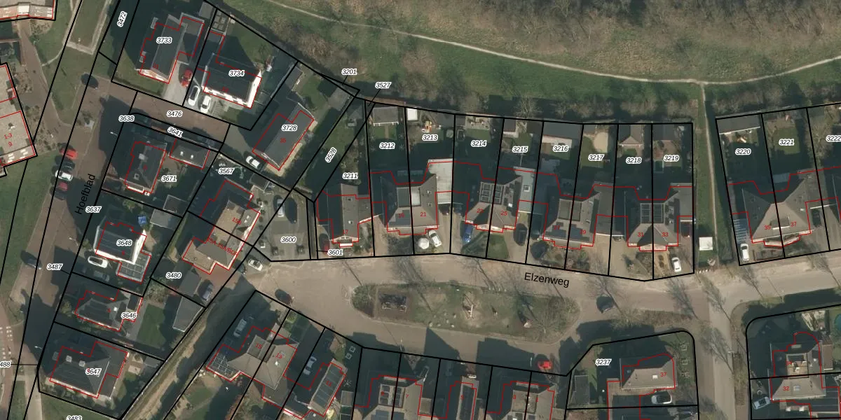 Elzenweg 21 is gelegen op kadastraal perceel WCN00B3213. Deze kadastrale aanduiding is uniek en wordt gebruikt door het Kadaster om eigendomsrechten en andere zakelijke rechten vast te leggen. Het perceel maakt onderdeel uit van de kadastrale gemeente Wijchen.