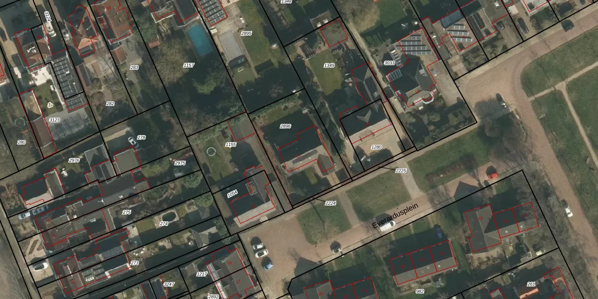 Het perceel waarop Everardusplein 14 staat heeft een oppervlakte van 730 m². Dit is een groot perceel. De perceeloppervlakte wordt geregistreerd door het Kadaster. Gedetailleerde informatie over de maten van dit perceel kunt u vinden in het rapport Kadastrale kaart met maatvoering van Everardusplein 14.