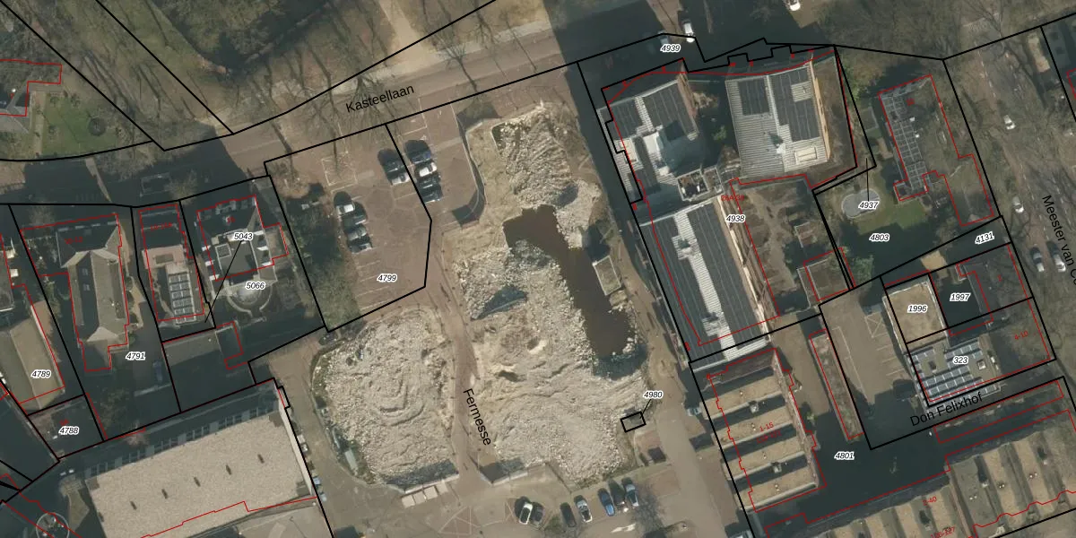 Het perceel waarop Fermesse 23 staat heeft een oppervlakte van 6769 m². Dit is een zeer groot perceel. De perceeloppervlakte wordt geregistreerd door het Kadaster. Gedetailleerde informatie over de maten van dit perceel kunt u vinden in het rapport Kadastrale kaart met maatvoering van Fermesse 23.