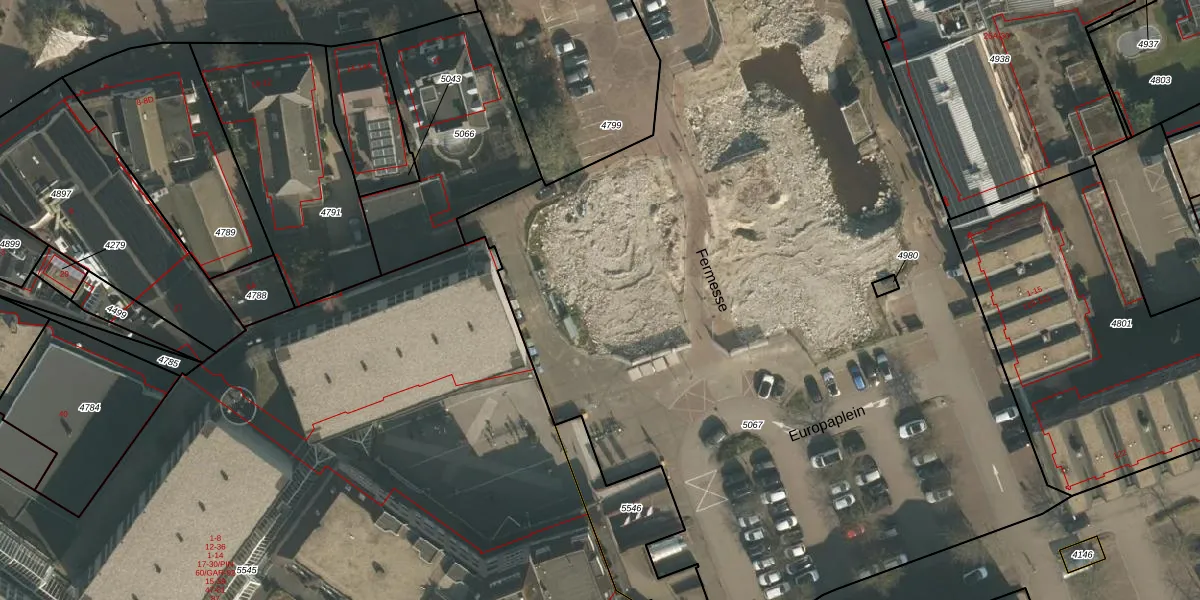 Het perceel waarop Fermesse 30 staat heeft een oppervlakte van 6769 m². Dit is een zeer groot perceel. De perceeloppervlakte wordt geregistreerd door het Kadaster. Gedetailleerde informatie over de maten van dit perceel kunt u vinden in het rapport Kadastrale kaart met maatvoering van Fermesse 30.