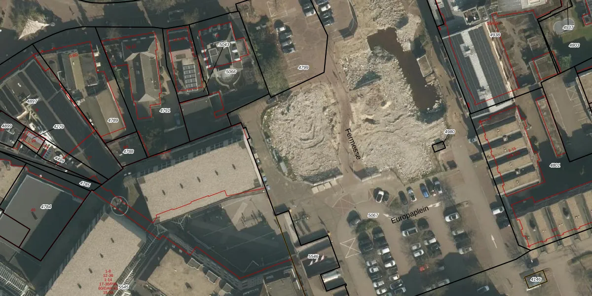 Het perceel waarop Fermesse 40 staat heeft een oppervlakte van 6769 m². Dit is een zeer groot perceel. De perceeloppervlakte wordt geregistreerd door het Kadaster. Gedetailleerde informatie over de maten van dit perceel kunt u vinden in het rapport Kadastrale kaart met maatvoering van Fermesse 40.
