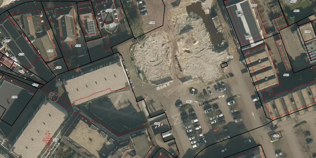 Het perceel waarop Fermesse 62 staat heeft een oppervlakte van 6769 m². Dit is een zeer groot perceel. De perceeloppervlakte wordt geregistreerd door het Kadaster. Gedetailleerde informatie over de maten van dit perceel kunt u vinden in het rapport Kadastrale kaart met maatvoering van Fermesse 62.