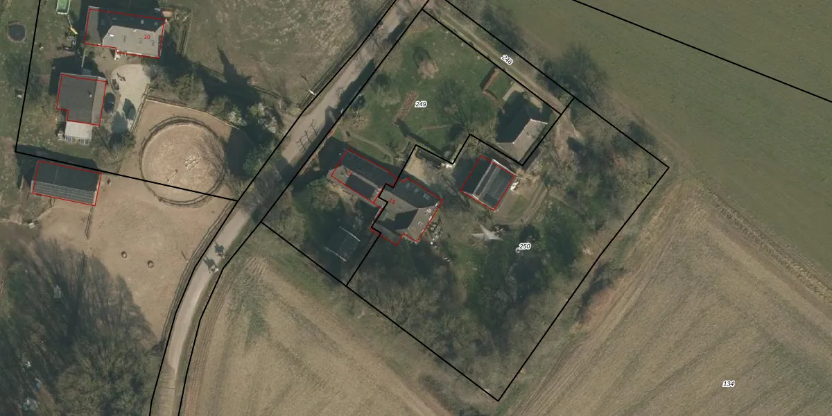 Het perceel waarop het adres ligt is WCN00-Q-250. De afkorting 'WCN00' staat voor kadastrale gemeente Wijchen. Het perceel is met 2873 m² relatief groot. Het gemiddelde ligt in de kadastrale gemeente Wijchen op 1828,5 m². De grootste perceeloppervlakte in de kadastrale gemeente is 66,4 ha. De kleinste oppervlakte bedraagt 0 m². Op het perceel bevinden zich geen andere adressen. De laatste wijziging in het de Basisregistratie Kadaster (BRK) was op 20-07-2000.