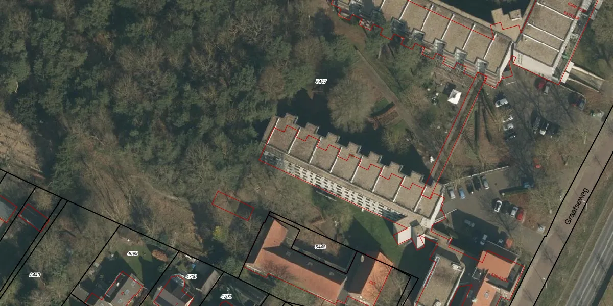 Graafseweg 633-G is gelegen op kadastraal perceel WCN00H5447. Deze kadastrale aanduiding is uniek en wordt gebruikt door het Kadaster om eigendomsrechten en andere zakelijke rechten vast te leggen. Het perceel maakt onderdeel uit van de kadastrale gemeente Wijchen.