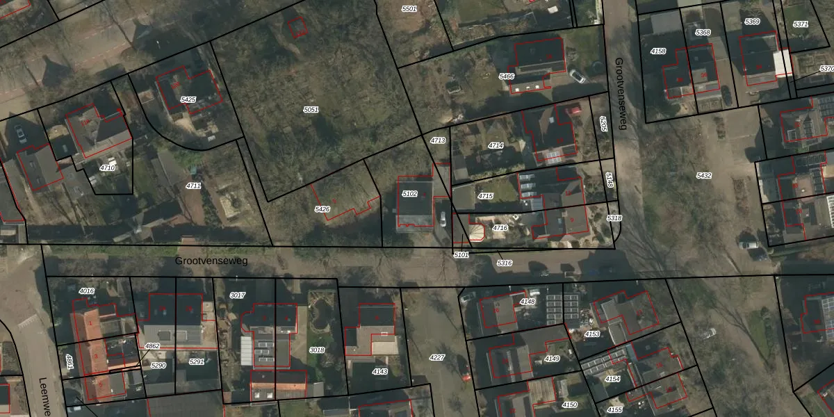 Grootvenseweg 7 is gelegen op kadastraal perceel WCN00H5102. Deze kadastrale aanduiding is uniek en wordt gebruikt door het Kadaster om eigendomsrechten en andere zakelijke rechten vast te leggen. Het perceel maakt onderdeel uit van de kadastrale gemeente Wijchen.